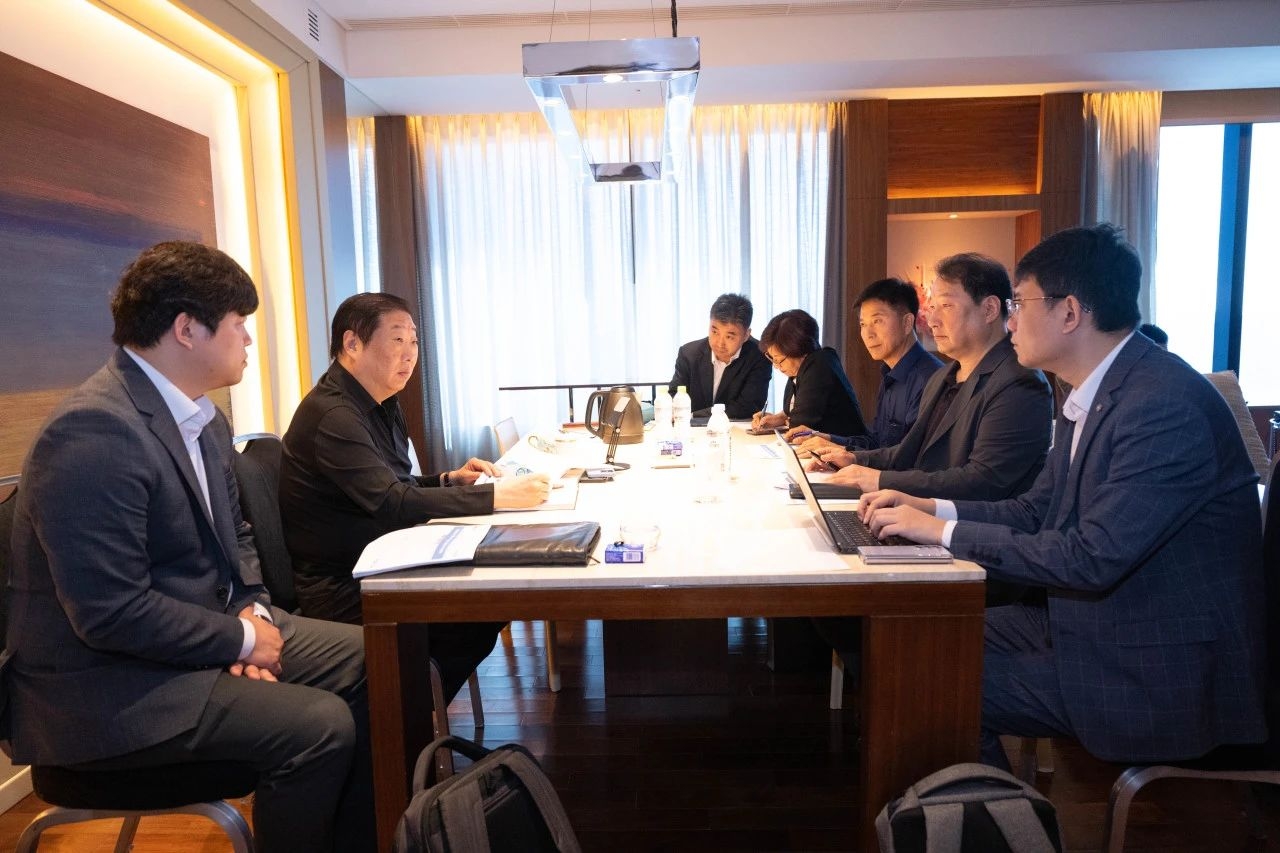 谭旭光到韩国唐津市走访博杜安发电设备代理商HANATEC,并与COMMERICAL总经理金荣星、HANATEC CEO郑钧座谈交流。